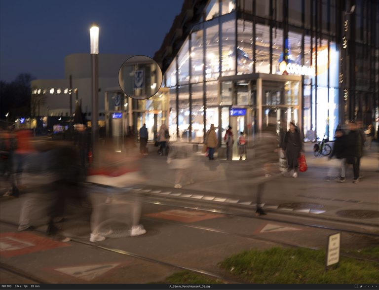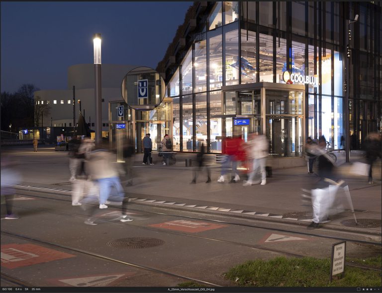 Im nächsten Beispiel seht Ihr eine Gegenüberstellung bei 25mm. Einmal mit Stabilisierung und einmal ohne. 25mm auf der Lumix GH6 ( MFT Format ) sind umgerechnet im Vollformat 50mm und entspricht der Sichtweise des menschlichen Sehens.