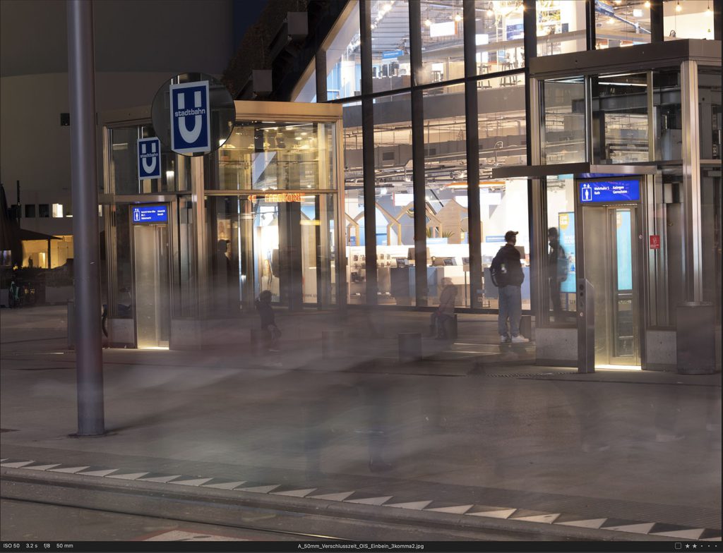 Das alles kann man natürlich noch weiter ausreizen, in dem man ein Einbeinstativ als Unterstützung dazu nimmt. Hier komme ich bei 50mm ( Vollformat 100mm ) und aktivierter Stabi auf eine Verschlusszeit von 3,2 Sekunden.